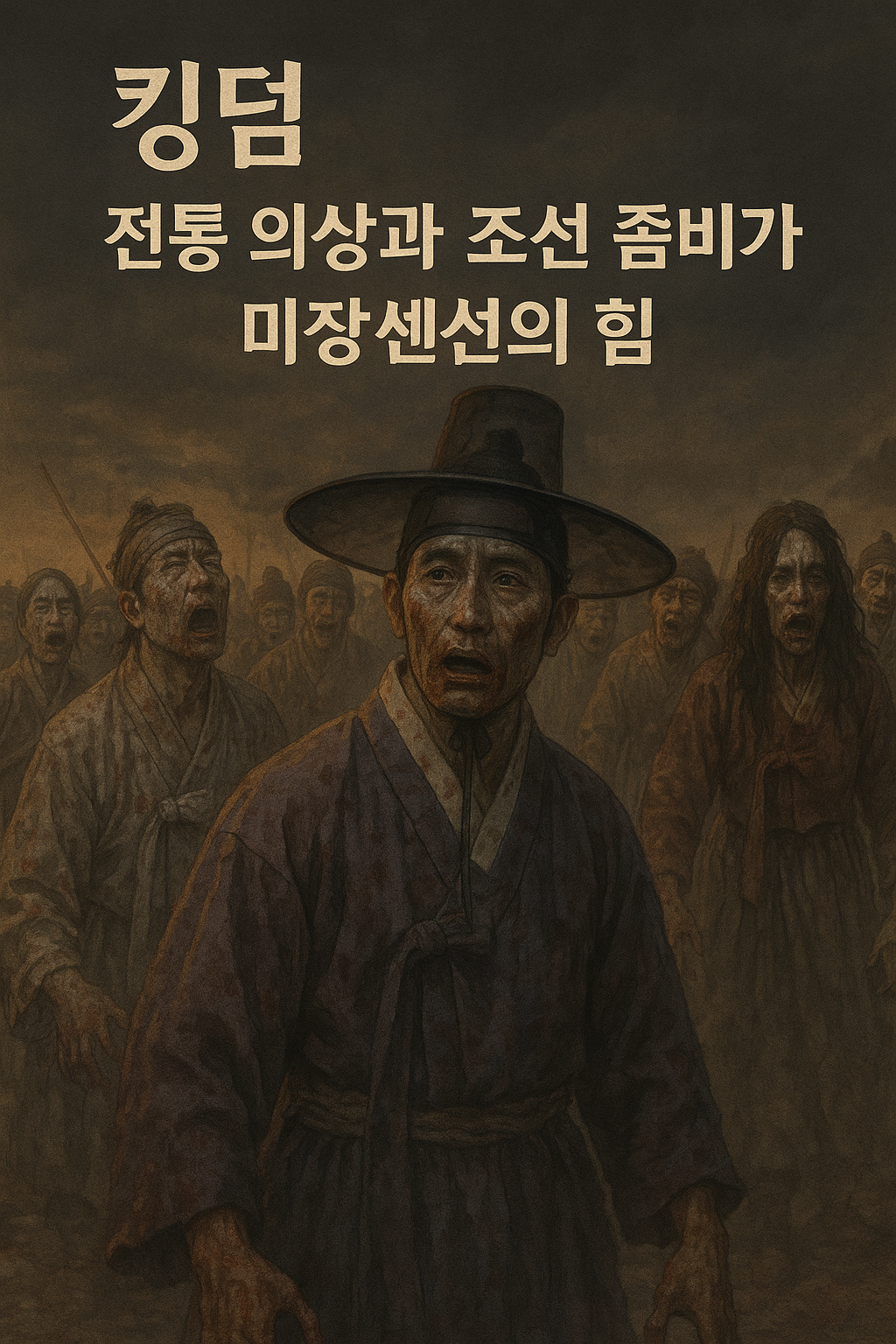 <킹덤>은 좀비와 사극이라는 이질적인 요소를 성공적으로 융합한 사례로 평가받는다. 하지만 그 성공의 배경에는 치밀하게 설계된 미장센, 전통문화에 대한 존중, 그리고 역사적 맥락을 녹여낸 제작진의 감각이 있었다. 좀비의 움직임 하나, 의상의 찢어진 결 하나, 음악의 음색 하나까지. <킹덤>은 그것들을 단순한 설정이나 장치가 아닌, ‘말 없는 메시지’로 만들었다.